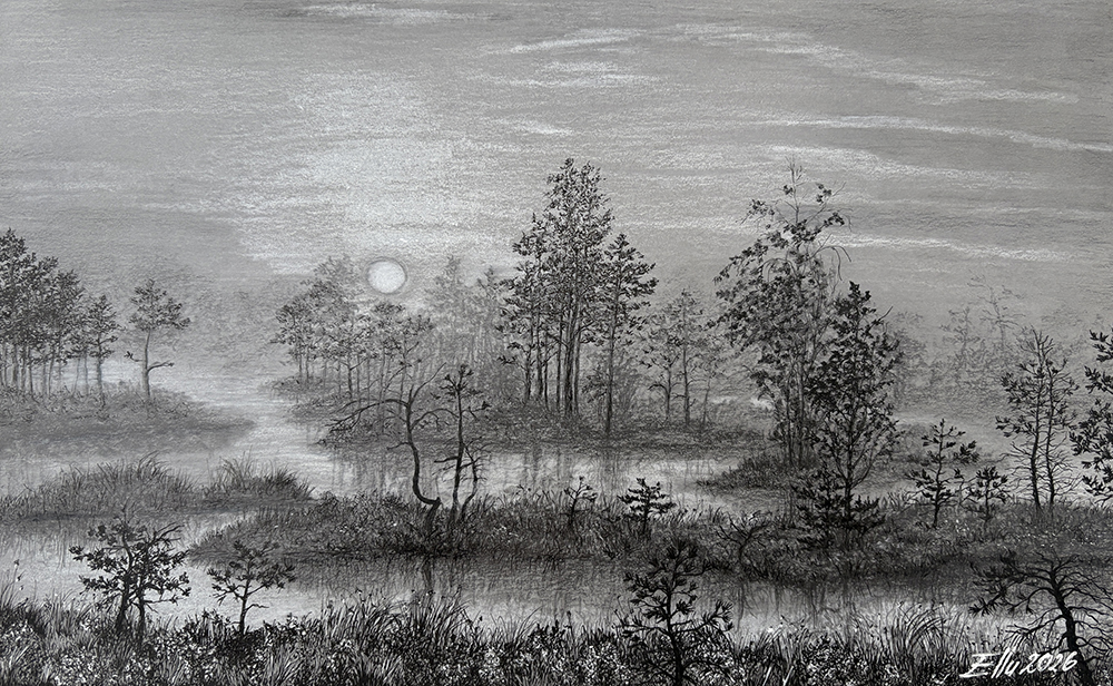 “Palasi raba talvel” (21×29; tušš ja grafiit; 2021)