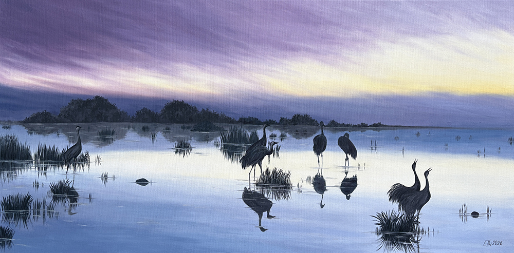 õlimaal “Sookurgede võlumaailm 3” (100×50; õli lõuendil; 2026)
